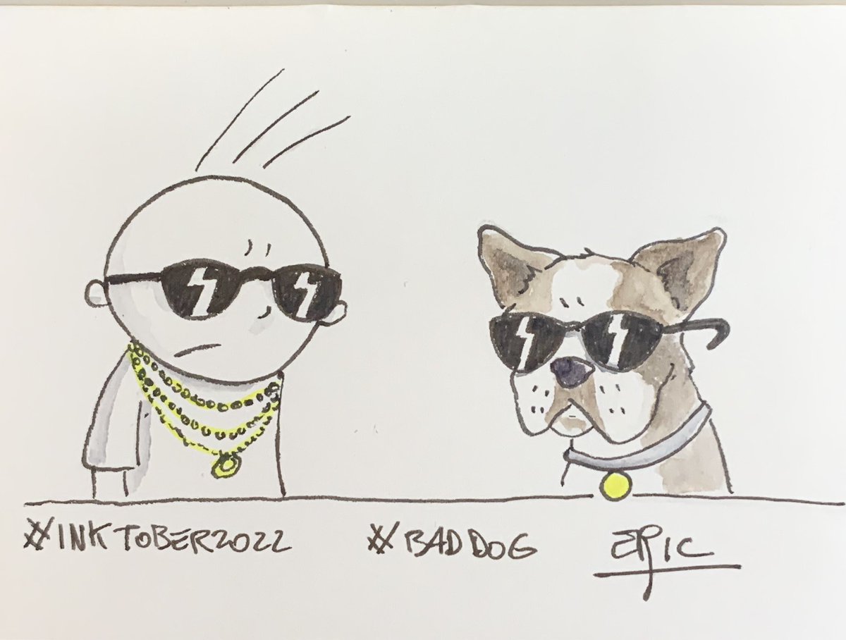 Bon vendredi Twitter ! #inktober #inktober2022 #baddog #illustration #doglover #bostonterrier #watercolor #badboy