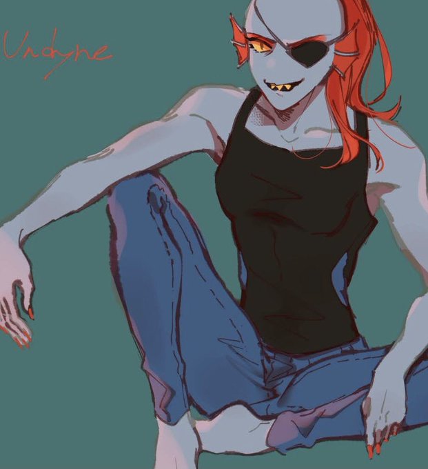 #アンダイン版深夜の真剣お絵描き60分一本勝負 #Undyne1HourDraw +30min お題:「ふじみのアンダイン」 "Undyne the Undying" 〈 A loving embrace to a former friend. 〉