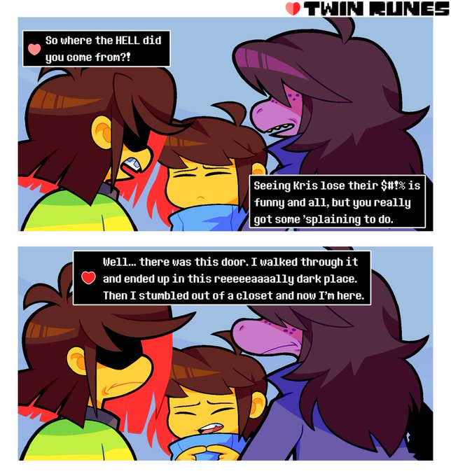 So a while back I drew a couple of teen Frisks and I really liked the interaction between them and Kris. So... these happened twitter.com/TheAkanemnon/s…