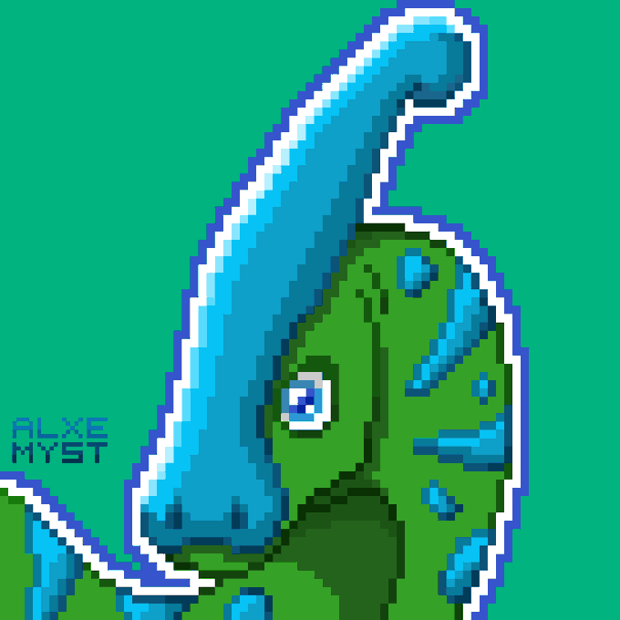 2 6 Parasaurolophus pixelatus I just discovered the pixel brush on medibang and now i cant stop #paleoart #pixelart 21/10/02 02:32