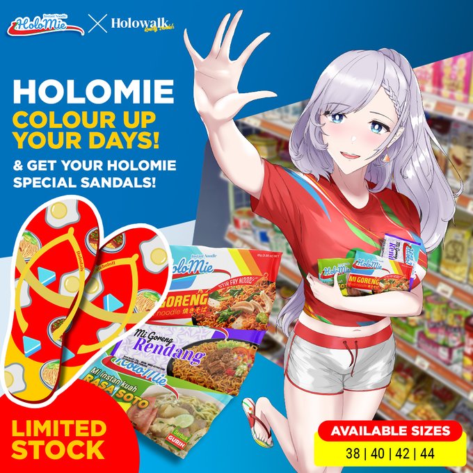 English version (not ads, but its cool idea so I'll put on ads mode) COLOR UP YOUR DAYS WITH HOLOMIE! get your special sandals for every Holomie and move up your days! (I commissioned t̵h̵e̵s̵e̵ ̵a̵d̵s̵ this art from @/VicichuArt, bonus in 🧵⬇️) #Reinessance #pavoliart #hololive