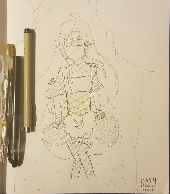 Day 4 of Inktober: Healer Chaser as Maid (Grandiel as a maid) #Inktober #Inktober2019 #Inktoberday4 #October4th #Grandiel #GrandChase #グラチェ #maid
