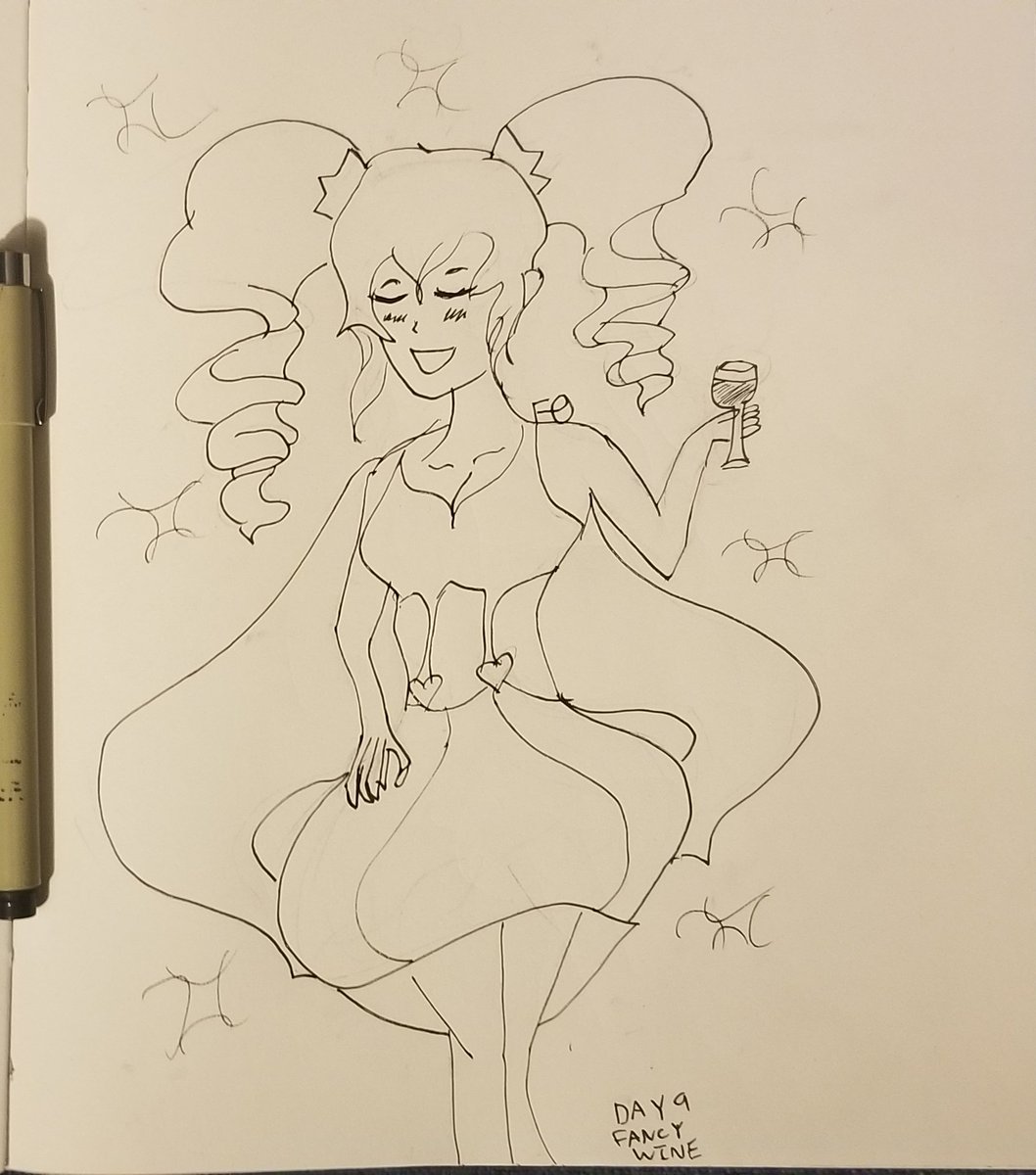 Day 9 of Inktober: Make a Fancy chaser drinking wine (Amy). Honestly not my best work but eh :/ #Inktober #Inktober2019 #Inktoberday9 #October9th #Amy #GrandChase #グラチェ #wine #fancy