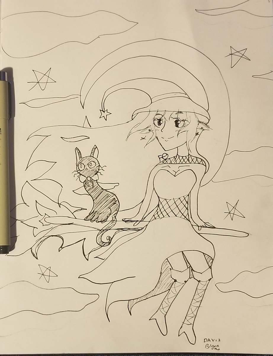 Day 13 of Inktober: Chasers with a black cat (Lire with Jiji) #Inktober #Inktober2019 #inktoberday13 #October13th #GrandChase #グラチェ #BlackCat #Jiji #Lire #Witch