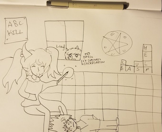 Day 26 of Inktober: Ley dominating kindergarten #Inktober #Inktober2019 #inktoberday26 #October26th #GrandChase #グラチェ #Ley #Dio #Karp #Kindergarten