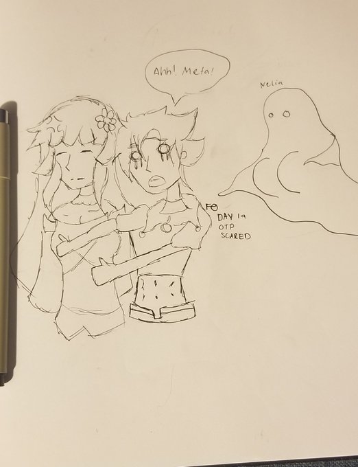 Day 19 of Inktober: OTP in a hainted house gettimg scared (Jin and Lire) #Inktober #Inktober2019 #inktoberday19 #October19th #GrandChase #グラチェ #Lire #Jin #Nelia #Ghost #Scared #hauntedhouse