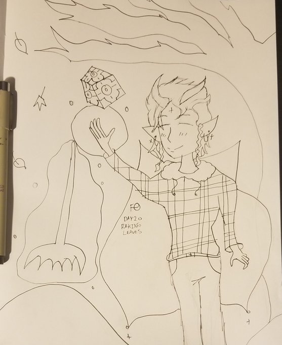Day 20 of Inktober: Chaser Raking Leaves (Veigas) #Inktober #Inktober2019 #inktoberday20 #October20th #GrandChase #グラチェ #Veigas #Leaves #Fall #Rake #Magic #Flannel