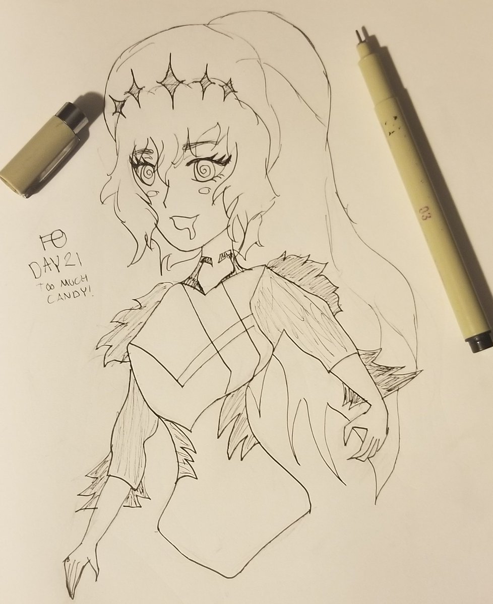 Day 21 of Inktober: Chaser had too much candy (Dark Elesis) #Inktober #Inktober2019 #inktoberday21 #October21st #GrandChase #グラチェ #Elesis #DarkElesis #Crazy #Drunk