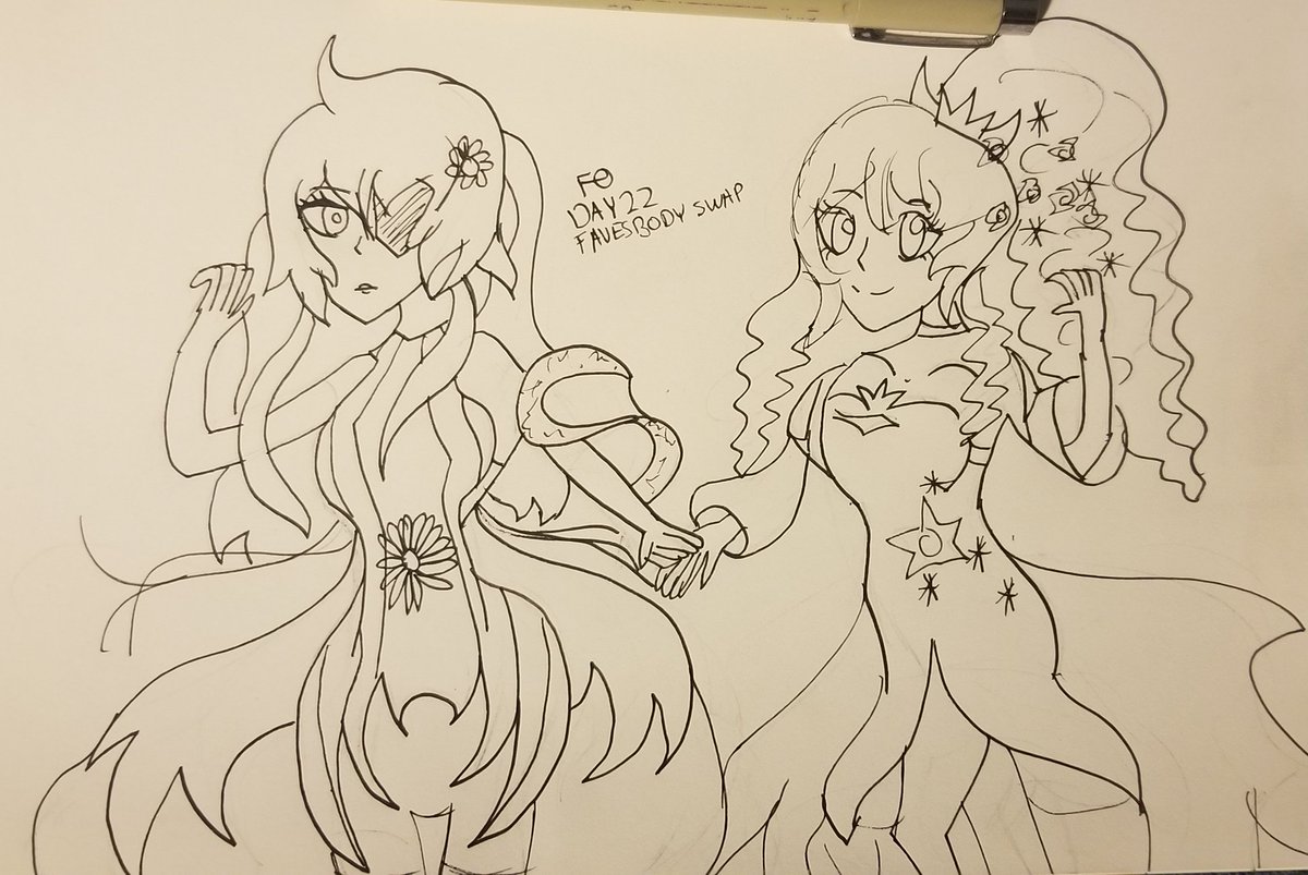 Day 22 of Inktober: Fave Chasers Body Swap (Lire & Edel) #Inktober #Inktober2019 #inktoberday22 #October22nd #GrandChase #グラチェ #Lire #Edel #BodySwap #Limitbreak #Confusion