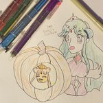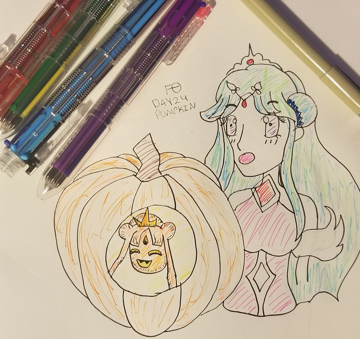 Day 24 of Inktober: Chasers carved into pumpkins reacting (Serdin) #Inktober #Inktober2019 #inktoberday24 #October24th #GrandChase #グラチェ #Serdin #Pumpkin #Queen #Scared #Rainbow