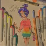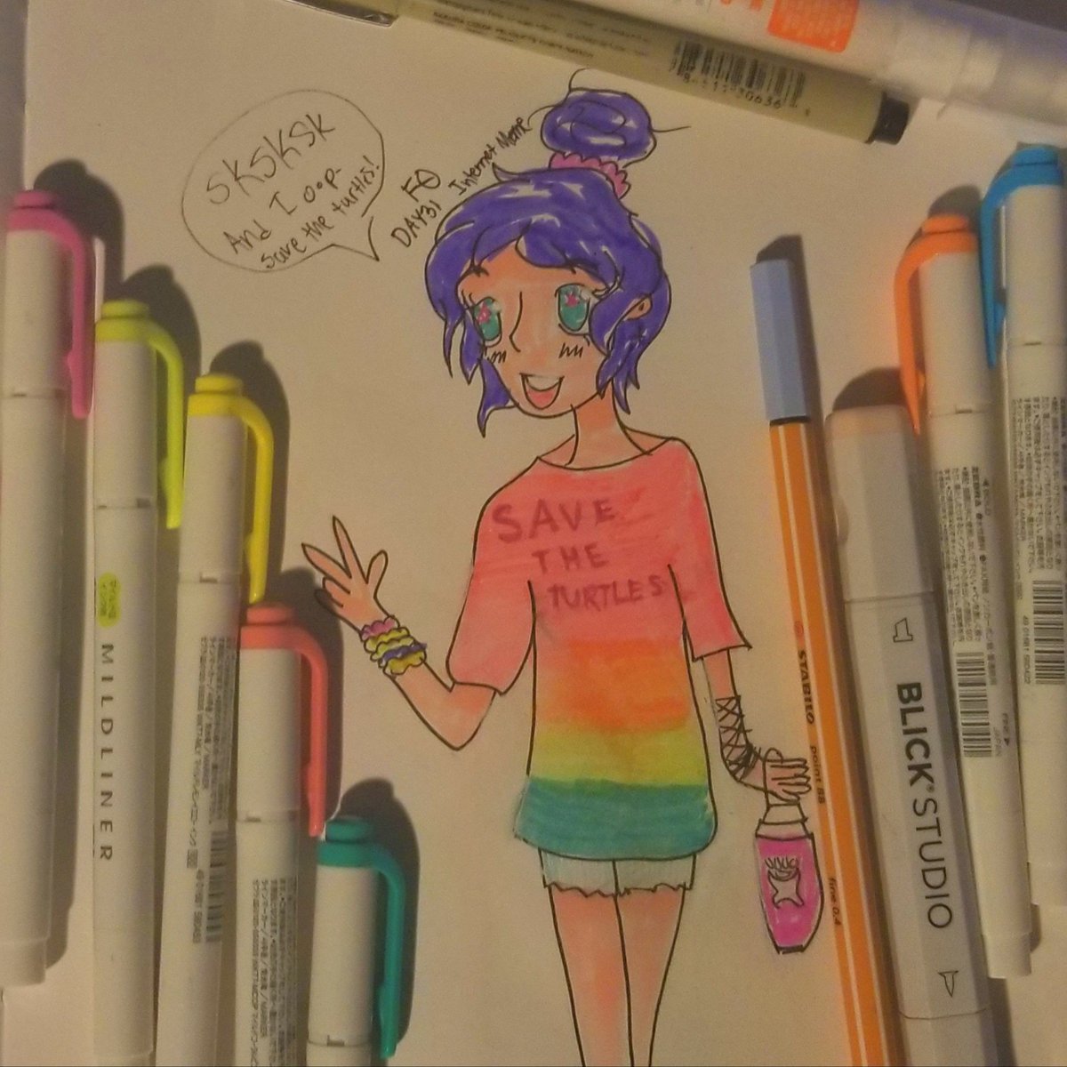 Day 31 of Inktober: Internet Meme (Arme as a Vsco Girl) Final day! Ahh~ #Inktober #Inktober2019 #inktoberday31 #October31st #GrandChase #グラチェ #Arme #VSCO #vscogirl #meme #final #rainbow #aesthetic