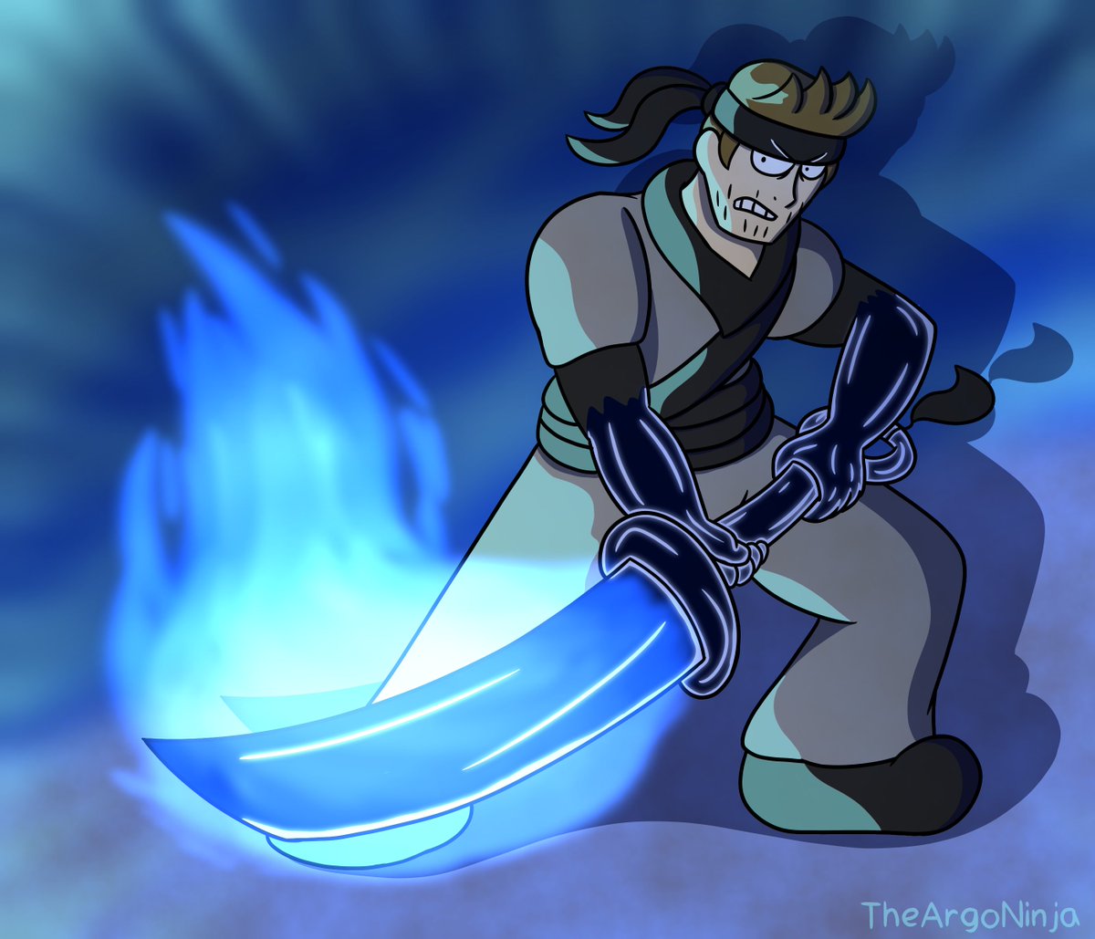 If we're making One Piece Characters, we gotta add some Haki Abilities! When Embued with Armament Haki, Argalo's sword will produce a blue flame. Does it add damage, outside the Haki? Probably not, but it looks cool. I call it "Ira Zul Mode" #OnePiece #Art #ArtistOnTwitter