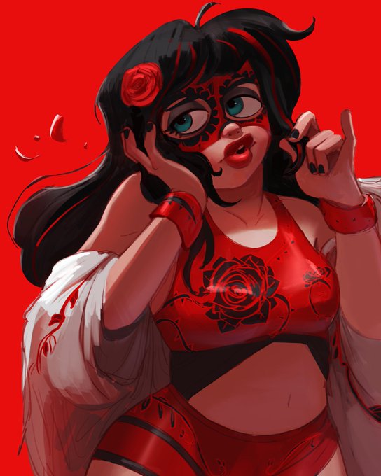 The Art & the Artist. We just wanted to paint #Frankelda & Herneval homaging one of our favorite art pieces 💙💙❤️🕷️✨