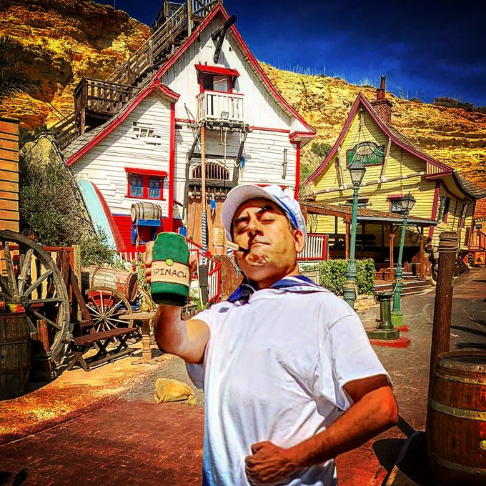 Today is #NationalSpinachDay I had to photoshop myself into @popeyemalta because our trip there was canceled due to the CoronaVirus @PopeyeTweetsk #PopeyeVillage #Malta #PopeyeTheMovie #Popeye #Cartoon #RobinWilliams #Spinach #Cosplay #PopeyeCosplay #Cosbounding #TheCosbounder