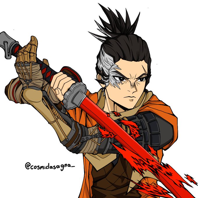 Buenas tardes jovenes, aqui les traigo mi humilde aporte de un fanart se Sekiro, pero trate de hacerlo con el artstyle (nah re spanglish lol) de Kimetsu no Yaiba, énfasis en "traté de-" #digitalart #FromSoftware #SEKIRO #DemonSlayer #kimetsunoyaibafanart