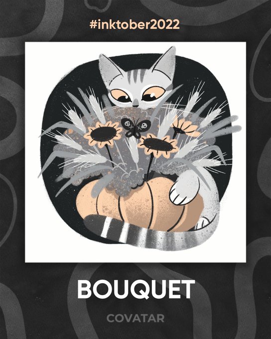 Purry's toothache won't let her munch candies this Halloween. SAD. 😿 So, a floral surprise will do this year!🌻 #bouquet #cat #covatar #digitalart #illustration #inktober #inktober2022 #halloween #spooky