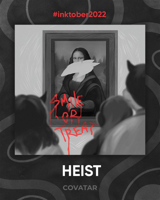 Yes, it should be illegal not to smile 😶 But vandalizing an artist's work is downright vile. 👿 #covatar #digitalart #heist #illustration #inktober #inktober2022 #halloween