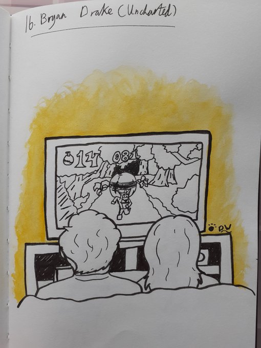 Done just over half of #DechartInktober now! :o Here's 16, Bryan Drake (Uncharted). I don't know much about Uncharted, except that one Crash Bandicoot easter egg, and since Bryan loves Crash, I thought that bit would be cool to do. 😁 #Inktober2019 @BryanDechart @AmeliaRBlaire