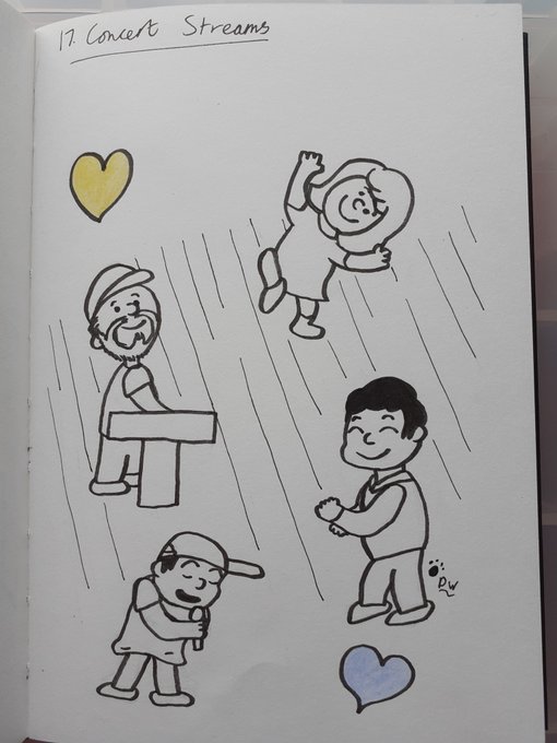 Day 17 of #DechartInktober, concert streams! When I was trying to think what to draw for this one, I thought about doing it like that bit in the Peanuts cartoon with all the singing and dancing. #Inktober2019 @BryanDechart @AmeliaRBlaire @itsdefinitelyLO @theGrasshapa