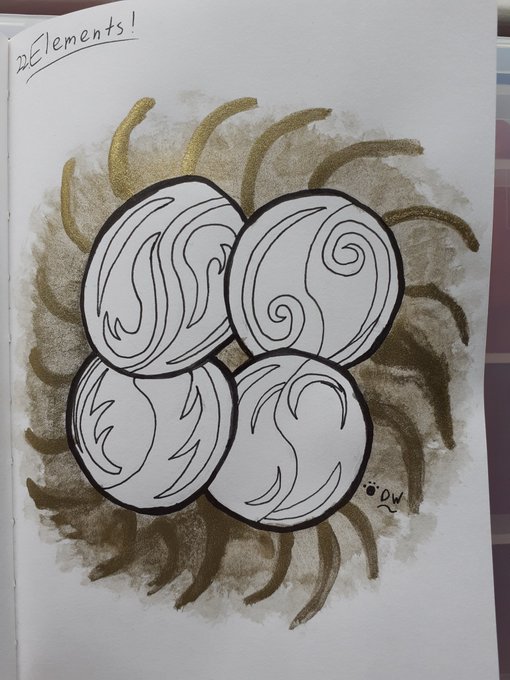 Day 22 of #DechartInktober, elements! :D Only done a quick drawing today, but done the elemental symbols from The Golden Spiral. #Inktober2019 @BryanDechart @AmeliaRBlaire