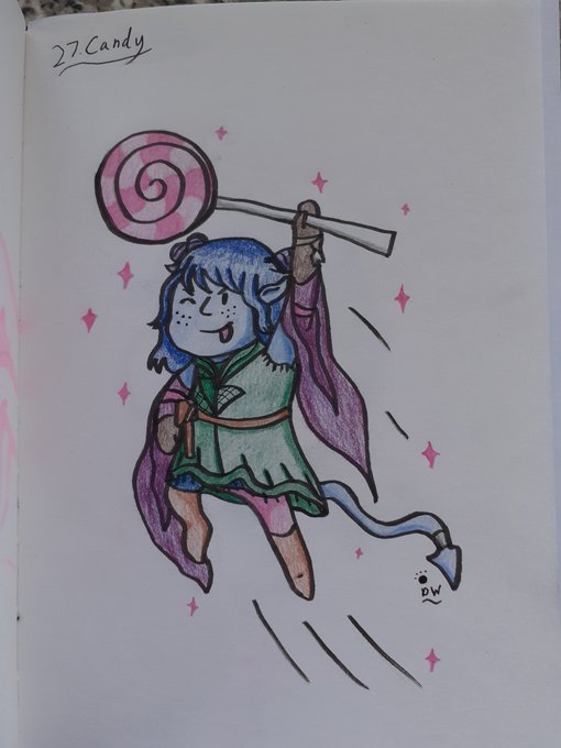 27. Candy. It's been a little while since I drew some Critical Role. 😁 Here's Jester with her spiritual weapon, a giant lollipop. 🍭 #FebDechART #DechartGames #CriticalRoleFanArt