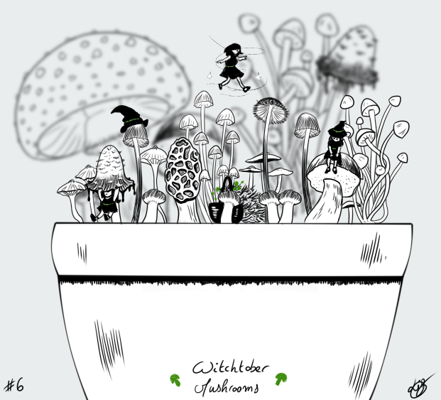 Jour 6 avec le quatrième #witchtoberartcoven de sunnylee_draws sur insta ! #Inktober2022 #Inktoberday6 #Inktober #Day6 #Witchtober #Mushrooms