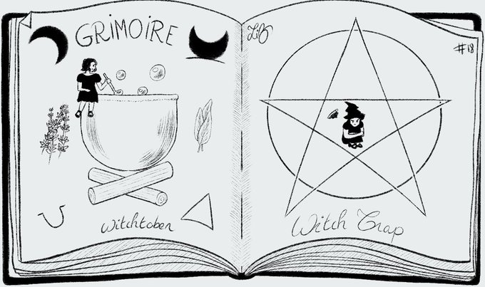 Jour 18 ! On repart un peu sur le Witchtober de SunnyLeeDraws sur Insta ! "Grimoire". Il était tout rigolo à faire celui-là #Inktober2022 #InktoberDay18 #Inktober #Day18
