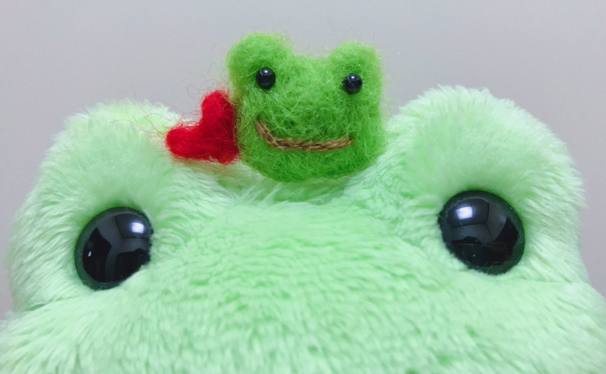 6 101 羊毛フェルトできました!❤️ 目がちょっと小さいような気もするけど…!可愛い!(ふに顔を目指した) #かえるのピクルス #羊毛フェルト 20/08/02 21:49