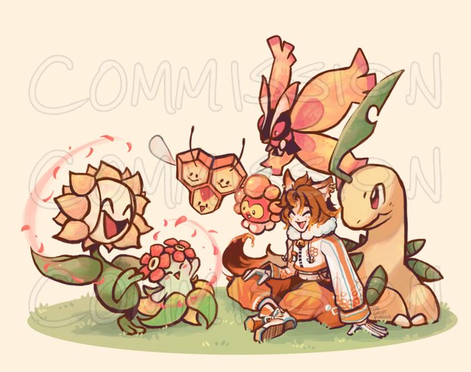 Such a fun team to draw!! Commission done for @BukkitBrown ! 🌻☀️🐝 Thanks so much!! #pokemon #commission #commissionsopen #vtuber #pokemontrainer #digitalart #artistsontwitter #art