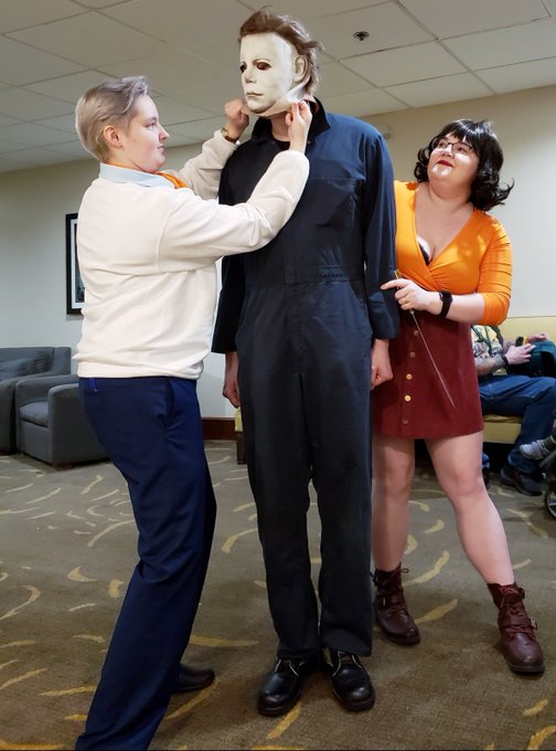 "If it weren't for you meddling kids!" 🎃 Happy #SlasherSaturday! That time Mystery Inc. unmasked Michael Myers! 🔪 Myers by @WhatDoesTheFluxSay on IG 🔍 Velma by @Quinnster667 on IG #ScoobyDoo #Scooby #FredJones #Velma #VelmaDinkley #MichaelMyers #Cosplay #Cosplaying #Horror