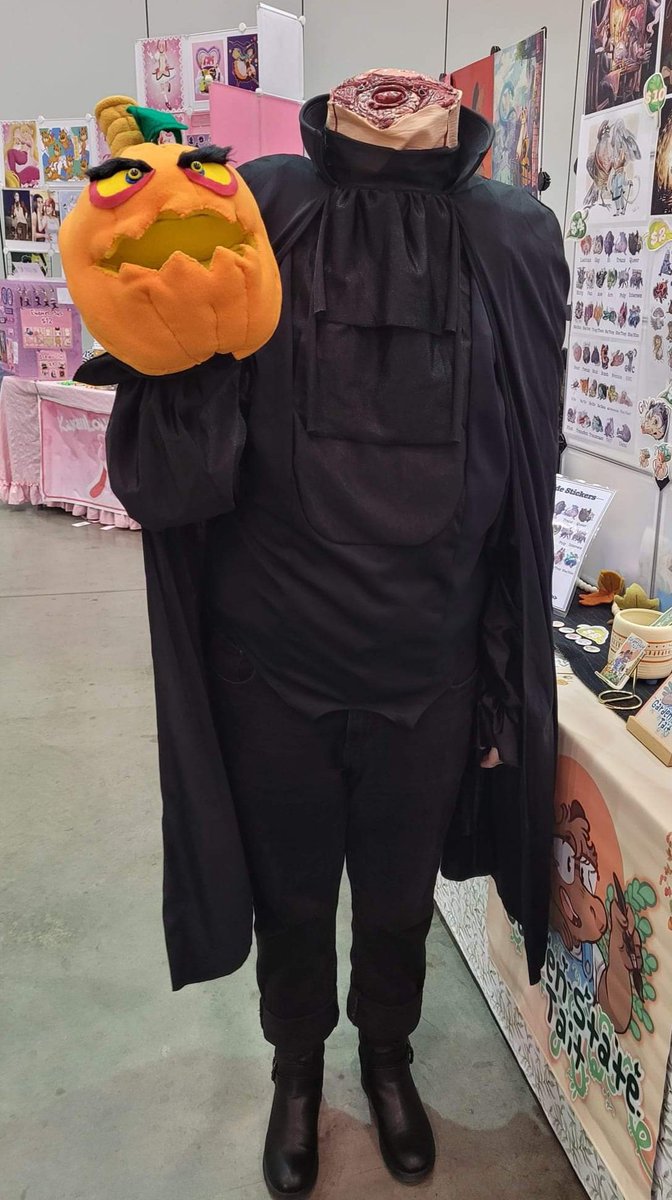 It's rather hard going to monster themed cons as The Headless Horseman, because all I ever get asked is "What that pumpkin do?" 🎃 #HeadlessHorseman #Horror #Cosplay #CosplayerGirl
