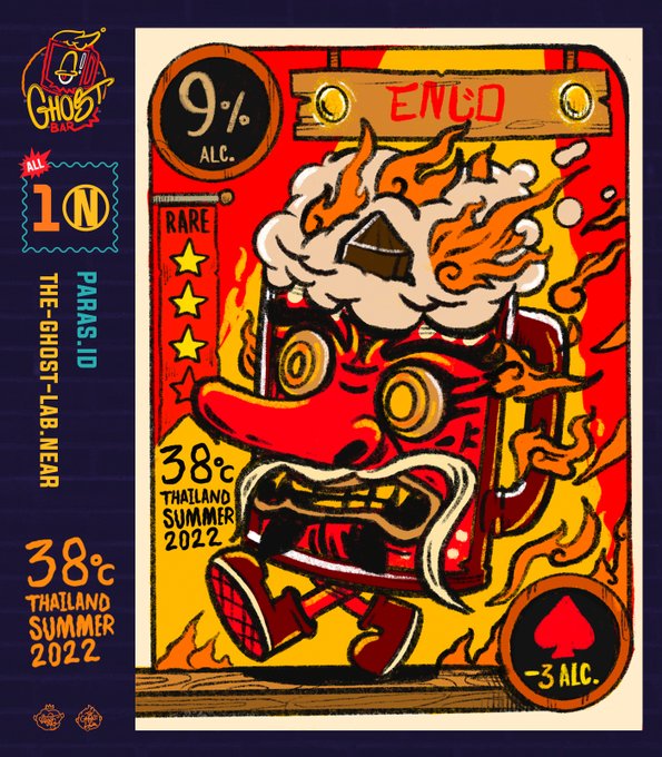 "ENJO" the last limited edition hot beer for Thailand summer 2022 เยียร์ร้อนใบสุดท้ายในเวลาที่พรอาทิตย์ตรงหัวในเวลา 12.16 น.มาซดให้คอไหม้ได้ที่ paras.id/collection/the… #Ghostbar #NFTartist #NFTdrop #NFTartwork