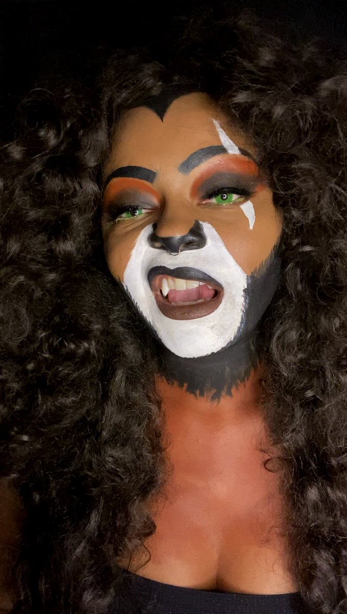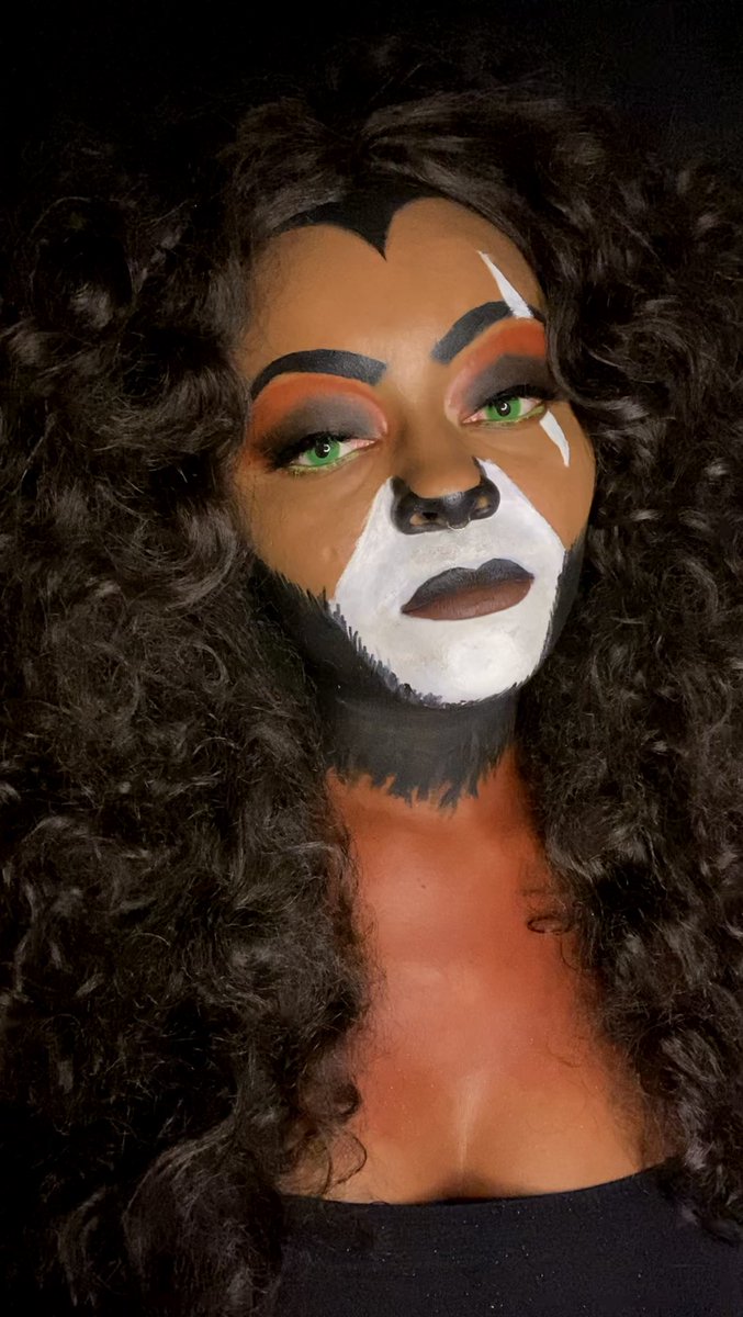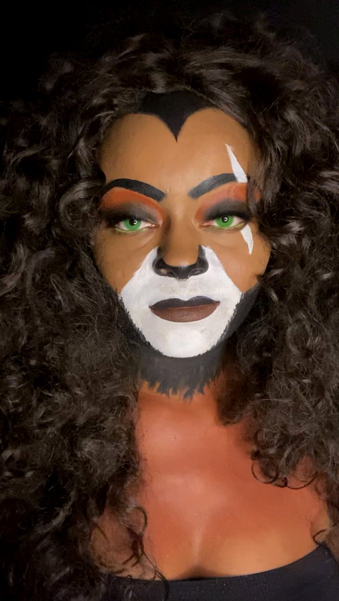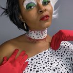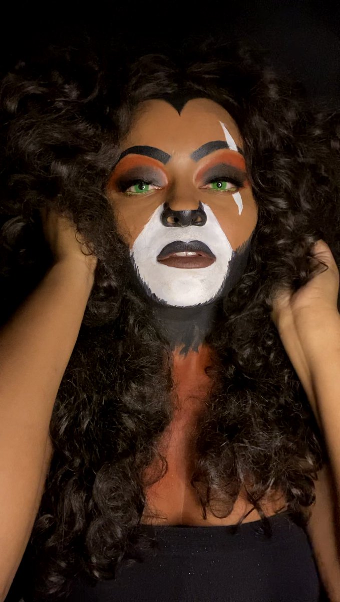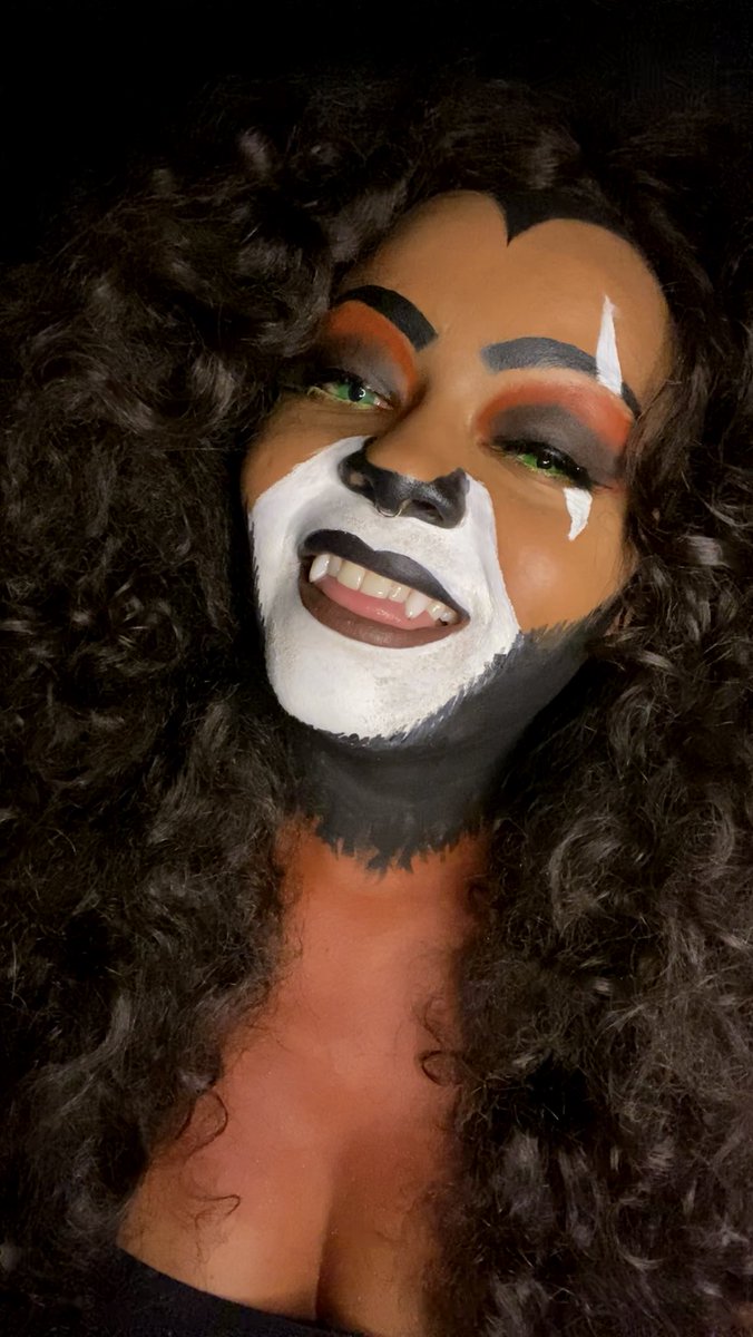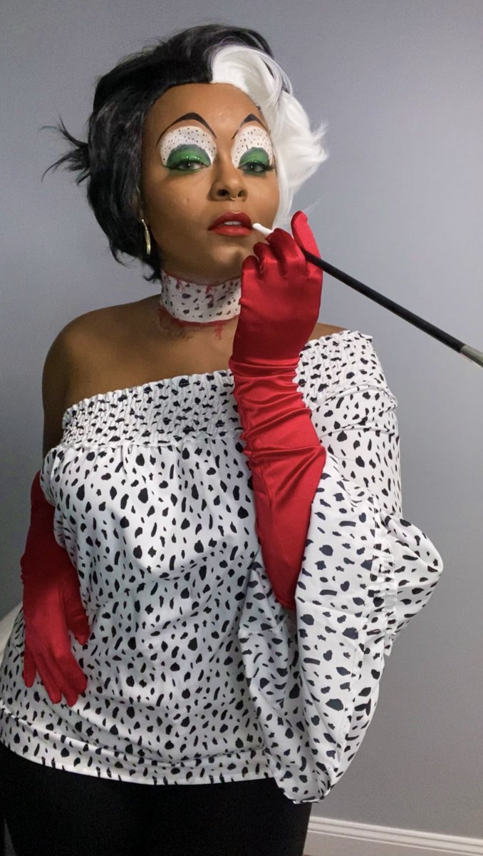 This is my first time doing body paint / big makeup, don’t let it flop ! Lol #CruellaDeVil 👠🖤🤍🩸 #31DaysOfCosplay #Blacktober #TheGreatCosplay #BlackCosplayerHere #CurlyCosplay #PlusSizeCosplay #WOCCosplay #BestCosplay #Cosplay