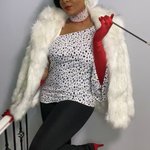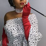 #31DaysOfCosplay DAY 5: She’s like a spider waiting for the kill, Cruella ... #CruellaDeVil 👠🖤🤍🩸🐶🙈 #31DaysOfCosplay #Blacktober #TheGreatCosplay #BlackCosplayerHere #CurlyCosplay #PlusSizeCosplay #WOCCosplay #BestCosplay #Cosplay