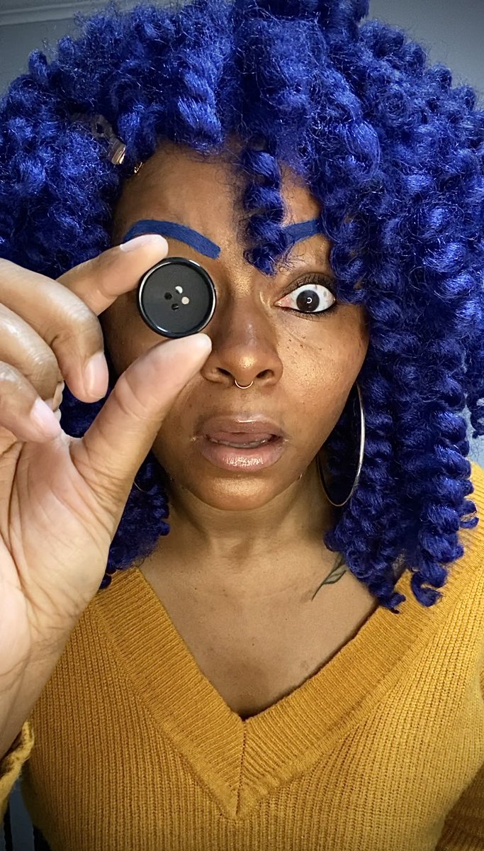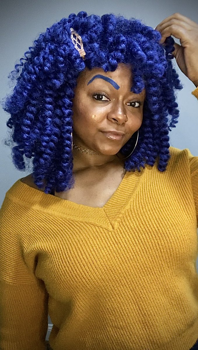 #31DaysOfCosplay DAY 21: Don’t call me cARoliNe, I’m #Coraline Jones ! 💙 #CoralineCosplay #Blacktober #BlackCosplayerHere #CurlyCosplay #StopMotion #WigMaking #ClosetCosplay #PlusSizeCosplay #WOCCosplay #BestCosplay #Cosplay