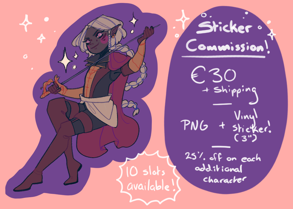 We've got ✨stickers✨ DM me if you'd like to grab a slot or have any questions! #commissionsopen #dndart