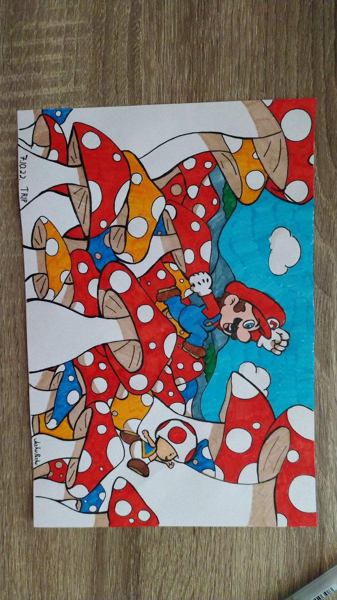 Good morning! Here is yesterdays #Inktober the prompt was trip so in the mood of the New Mario movie trailer I drew Mario and Toad on a trip:) #fanart #inktober2022day7 #SuperMario