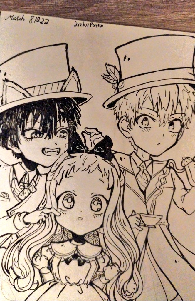 POSTING A LITTLE LATE AAAA!!! Yesterdays #inktober Match so here we have #toiletboundhanakokun Characters wearing matching Alice in wonderland outfits! Was it a strech? Mayyybee but it was fun:> #inktober2022 #fanart #Inktoberday8