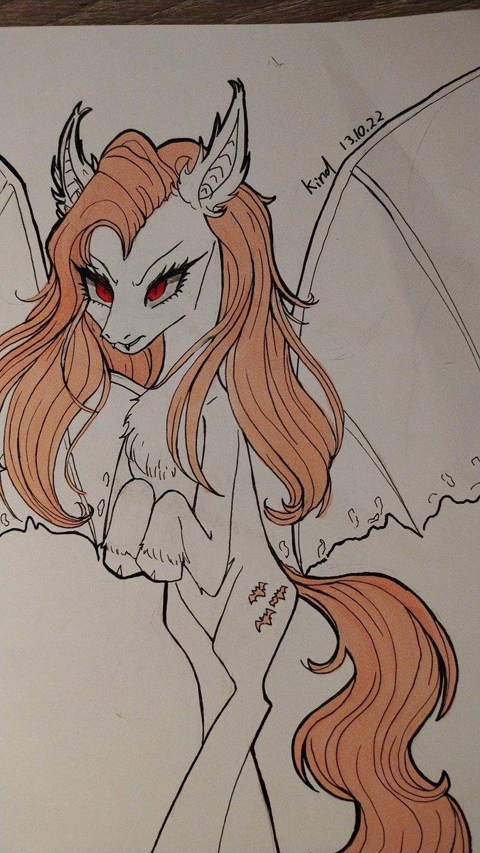For yesterdays #inktober we got the prompt kind. And since inside I am still 7 years old we got #Fluttershy with a a halloween twist so Flutterbat:D Welcome to my art! All about drawing nostalgia:> #inktober2022 #inktoberkind