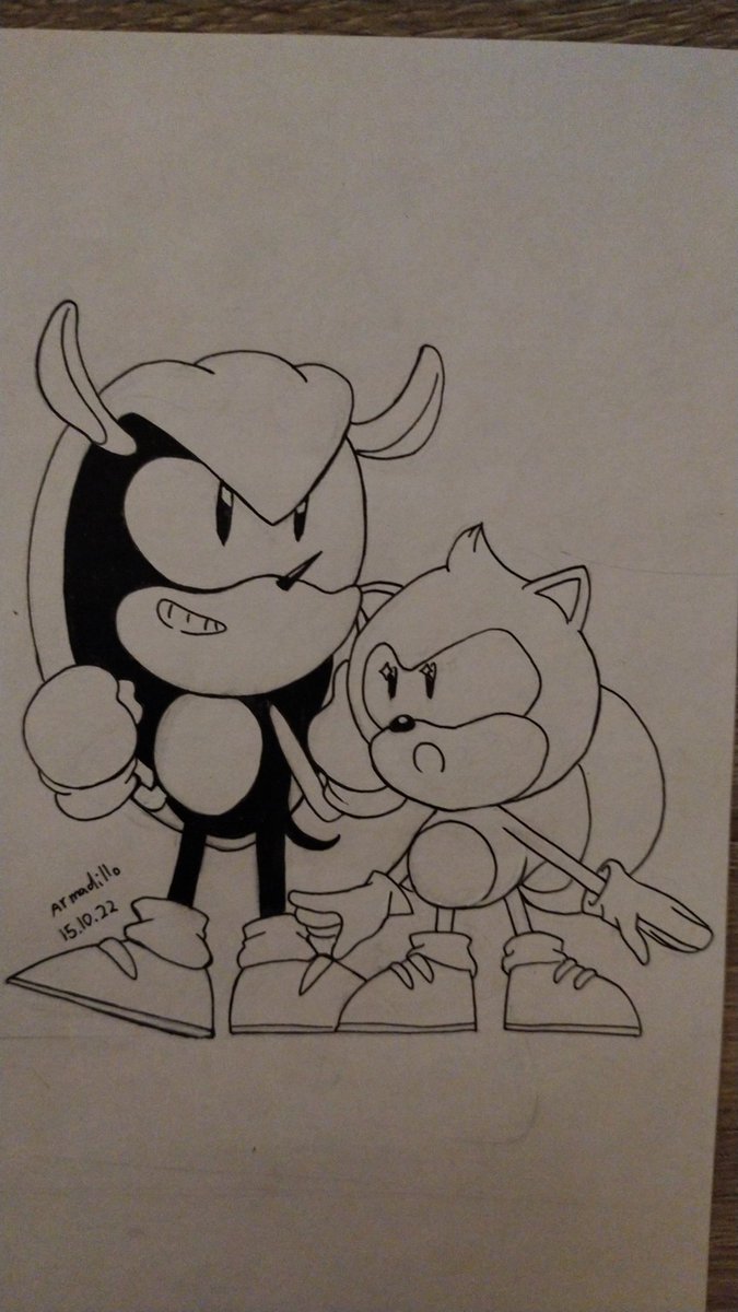 AAAND for todays prompt armadillo we got Mighty the Armadillo from #Sonic with his friend Ray the flying squirrel. Very simple but fairly cute:) I might colour it if I find the right colours! #Inktober #inktober2022armadillo #Inktobertale2022