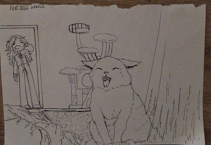 And for today for the prompt "scrape" My dummy self remembered wrong and thought it was scratch but its close enough!! Here we got a wizard and his kitty who is always just scratching his clothing #inktober #Inktobertale2022 #inktober2022day18