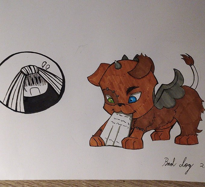 Another day another #Inktober posted late haha. Watzit isn't a bad dog, except for when he eats your homework. Rest in pieces:( #inktober2022 #MonsterHigh #inktoberbaddog