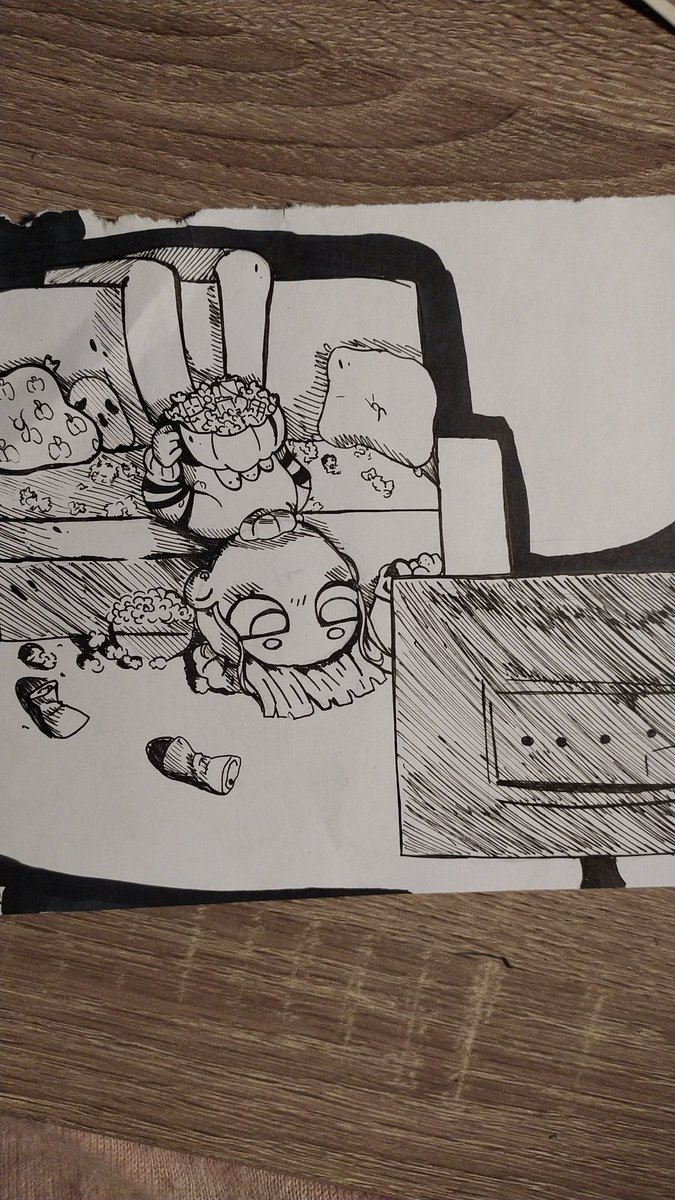 I am actually pretty Fond of this one^^ #Inktober ! For the prompt "snack" We have a gal snacking while watching some spOoOky movies haha. hope y'all like it!! #inktober2022 #inktober2022day27
