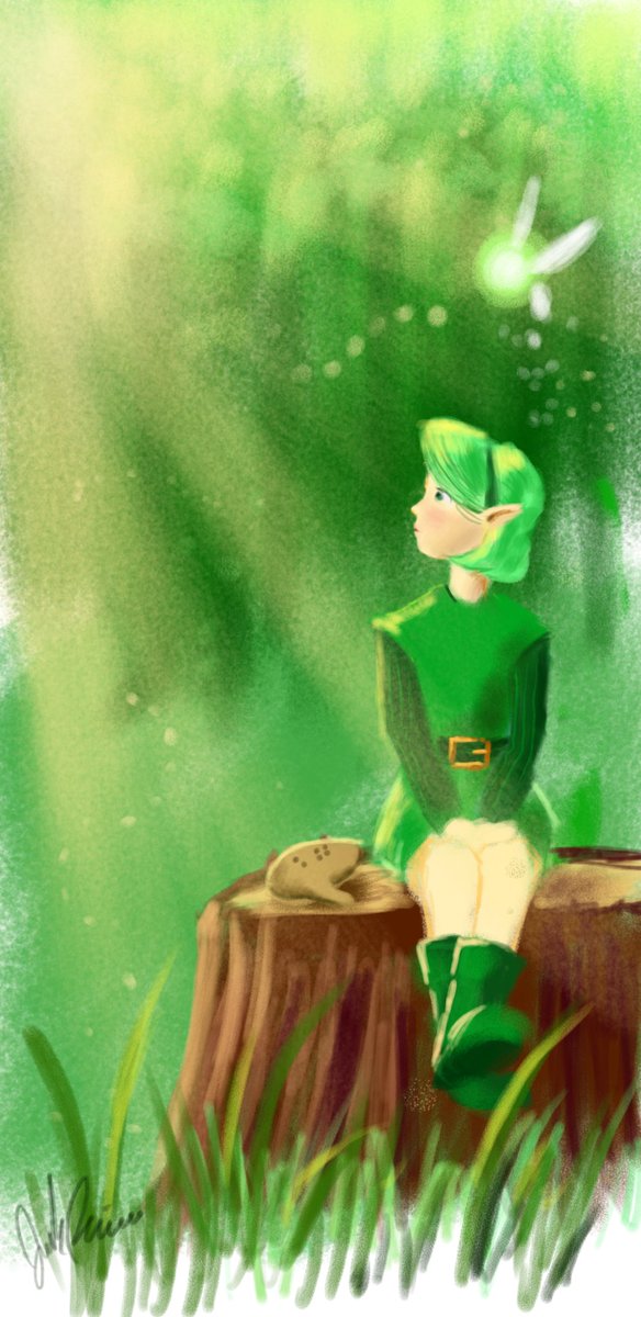 Waiting For Him to Call. (late) Day 4 of #inktober #linktober. #radio #favoriteplace #Zelda #ocarinaoftime #saria #kokiri #forest #inktober2020 #linktober2020 #art #digitalart #sketchbook #GalaxyNote9