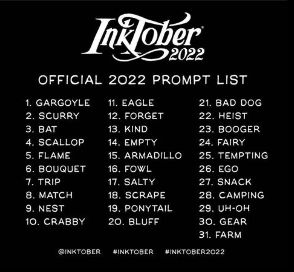 #inktober #Inktobertale2022 12-Forget. 13\14\15\16-kind/empty/armadillo/fowl. 17/18-salty/scrape. 19-ponytail.