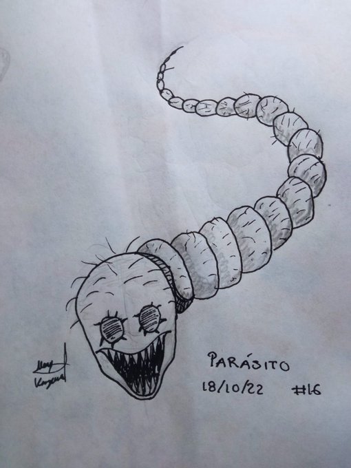 Día 16 "PARÁSITO" Esto no se que sea, alguna especie de gusano gigante y peludo supongo jsjsjs da miedito y asquito #inktober2022 #inktober #inktober2022day16