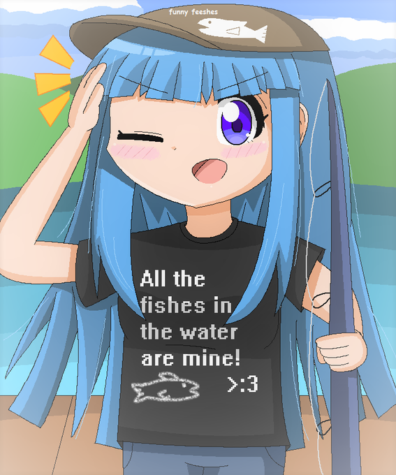 yes, i decided to make blue a fishing enjoyer. i say we need more fishing girls. 🐟 #originalcharacter #artwork #イラスト
