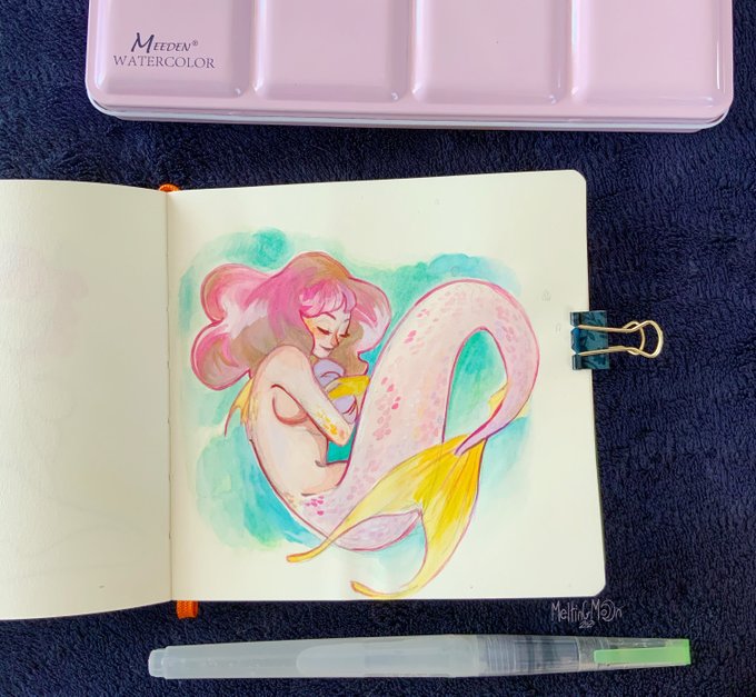 I painted most of this on Mother’s Day and finished around a few days go, I’m not sure if you can tell what’s she’s holding (it’s a baby) :p #art #watercolor #gouche #mermay #mermaid #mermay2021 #sketchbook #myart