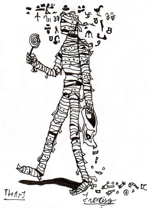 Mummy + Candy #Dia6#inktober2021 "...Aquellas antiguas ofrendas permanecen intactas después de tres mil años, porque Egipto no podía hacer nada que no fuera eterno...."