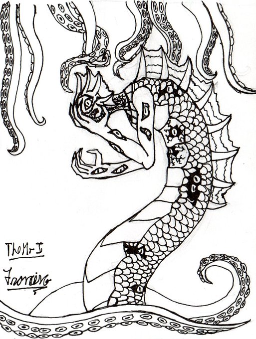 Dragon + Strangulation #Dia7#inktober2021 "...Desde tierra, parecen relámpagos lentos. Y lo más maravilloso en ellos es su canto. Su voz es como el repicar de una gran campana y, cuando hablan en voz baja, es como si se oyera el sonido de esa campana en la distancia...."